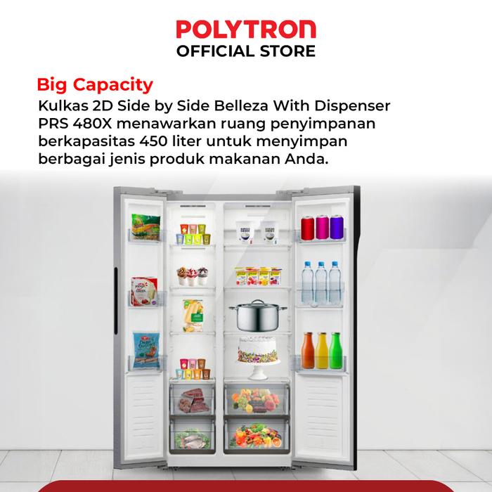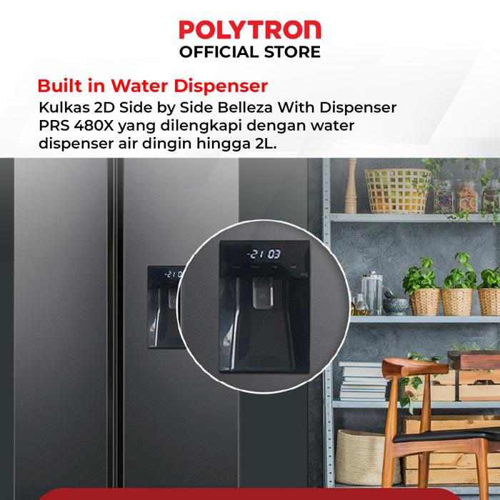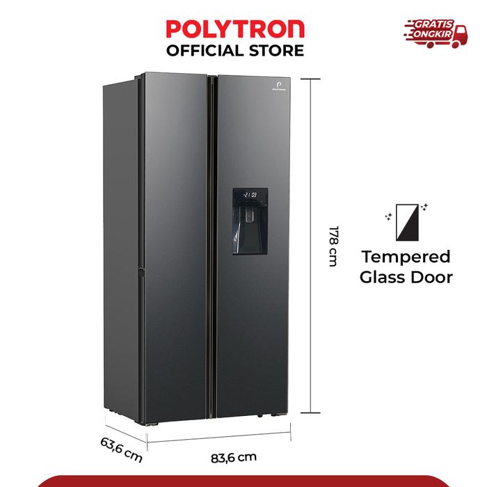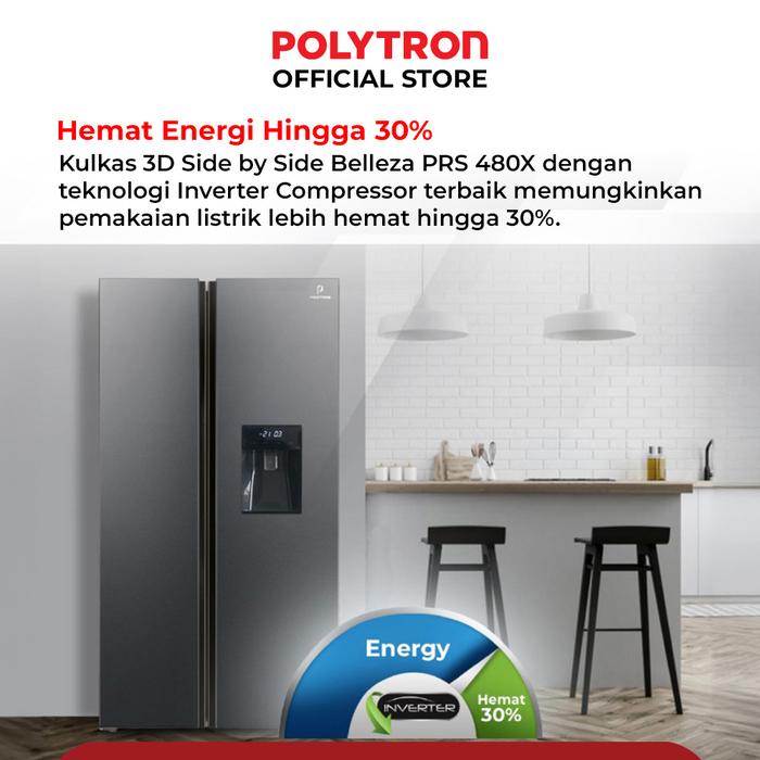 Kulkas Polytron New Belleza Inverter 2 Pintu Side-By-Side Prs 480X - Hitam
