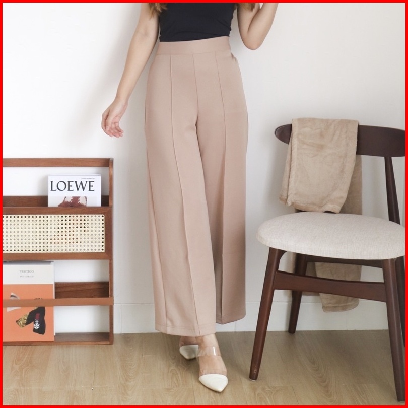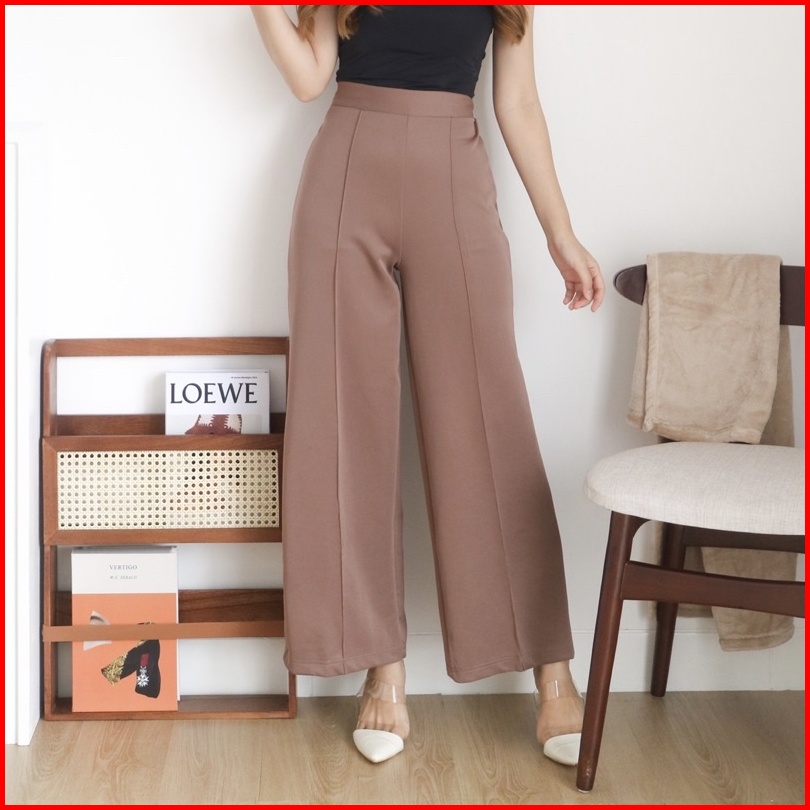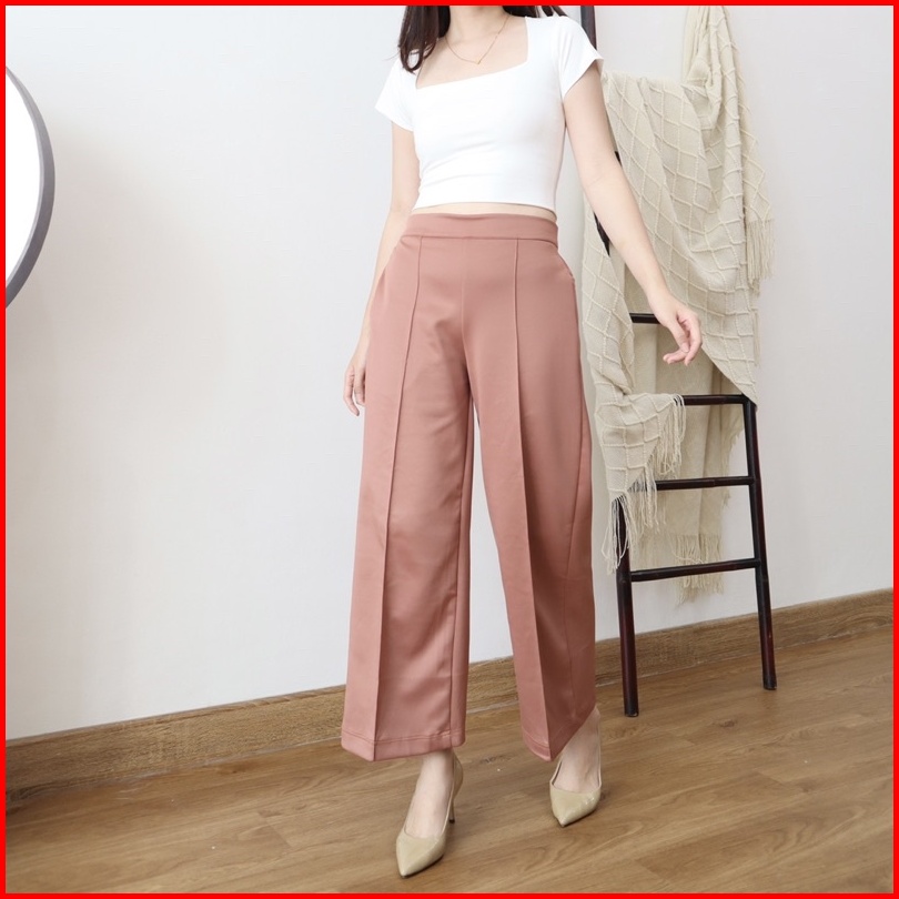 Msmo Wilona Scuba Pintuck Pants Highwaist Culotte Celana Kantor Celana Scuba Celana Kulot Celana Kulot Wanita