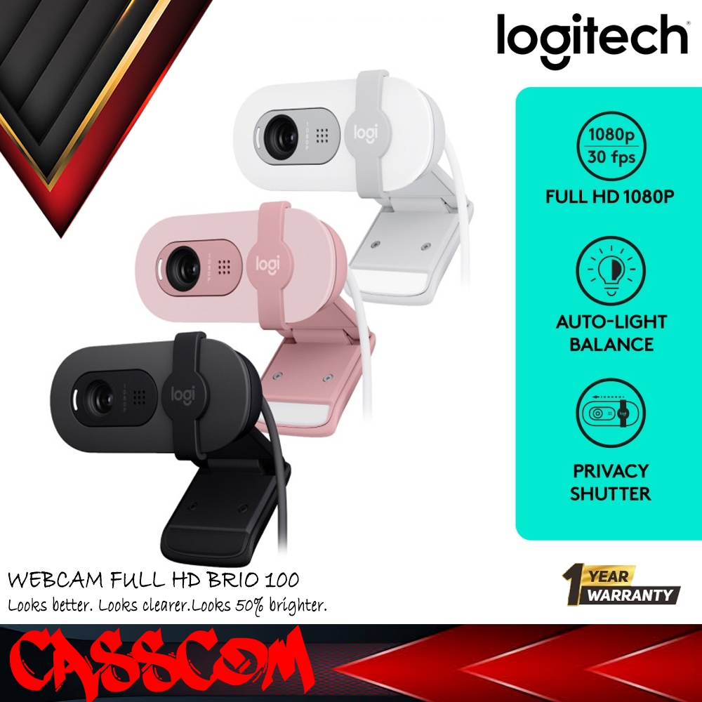 Logitech Brio 100 Webcam Full HD Shutter Privacy & Built-in Microphone