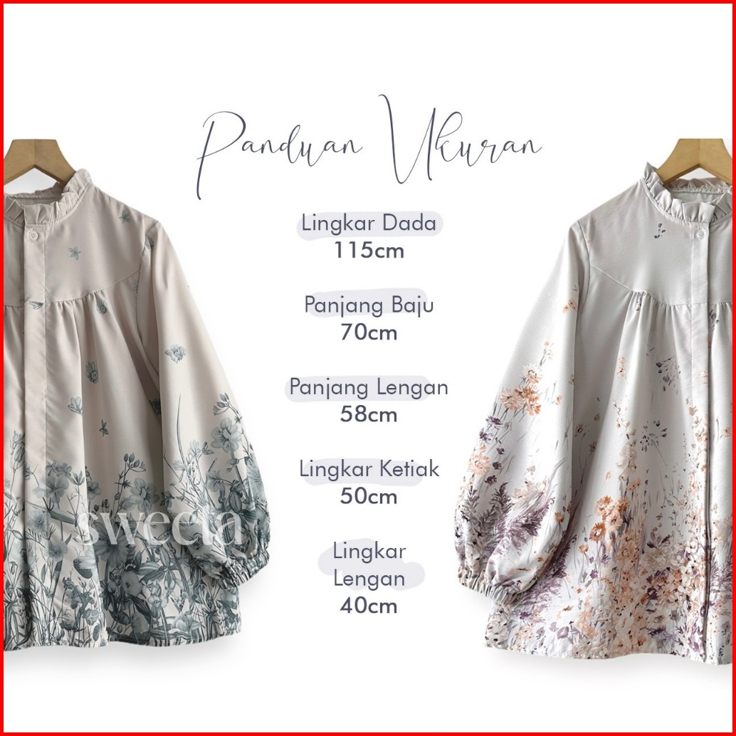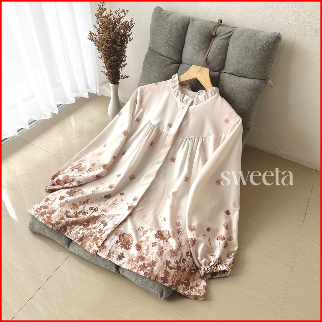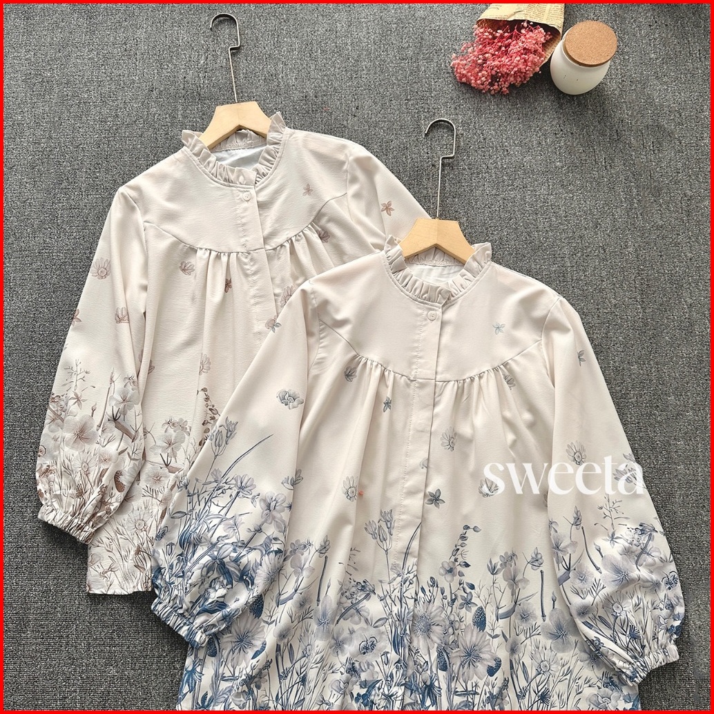 Sweeta Blus U Rample Motif Flower Silk Cotton Ld 115 Cm Korea Style Kancing Dapat Dibuka Atasan Pakaian Wanita Muslim Ta
