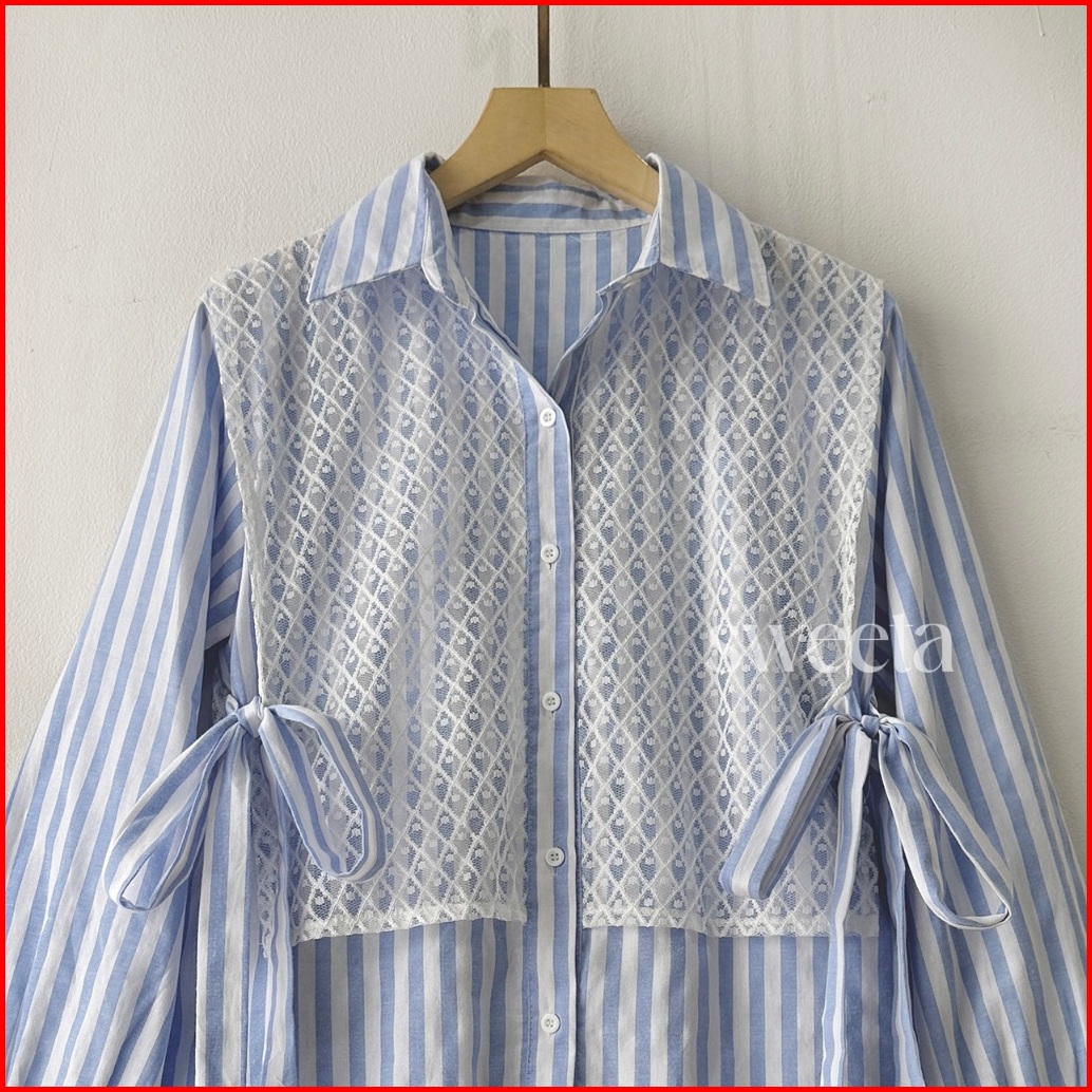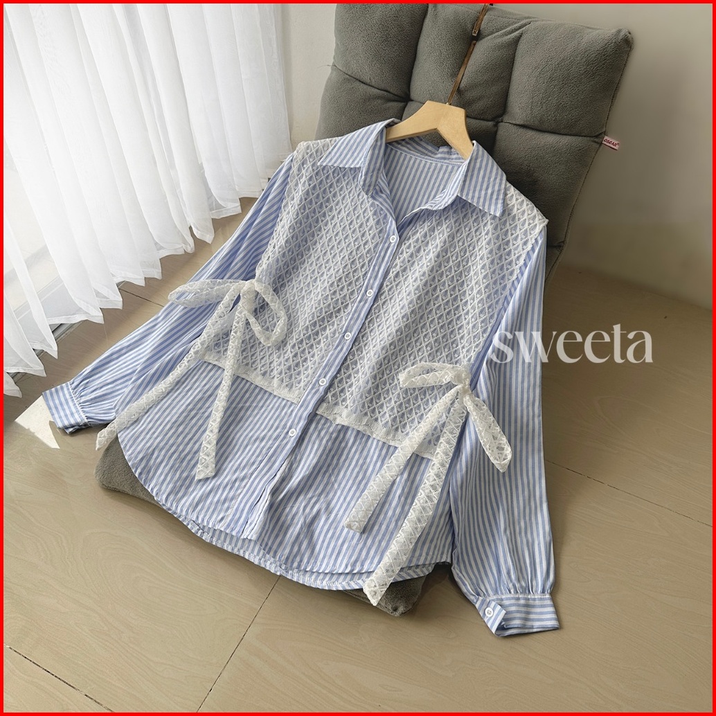 Sweeta Kemeja Blouse Vest Mix Brukat Katun Salur Korea Style Ld 105cm Rompi Kemeja