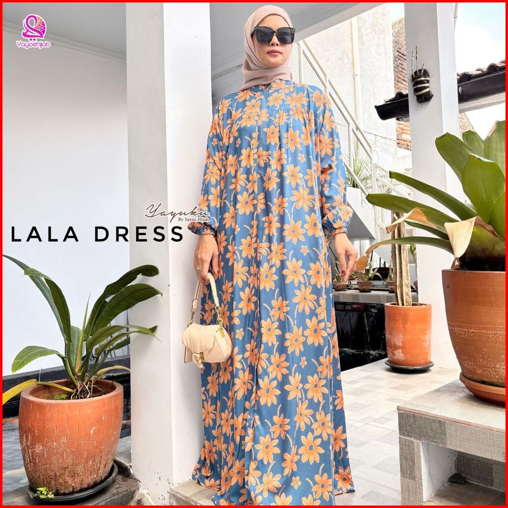 Lala Dress Gamis Muslim Wanita Cantik Busui Motif Rayon Viscose Homedress Muslimah Kekinian Yayuku