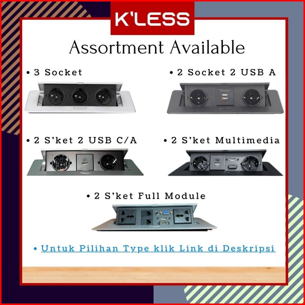 Stop Kontak Meja Meeting Tanam 2 Usb Type C A - 2 Socket Soft Pop Up