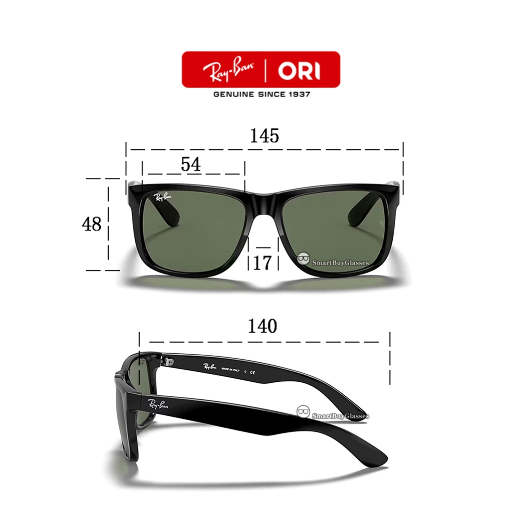 Asli Kacamata Hitam Ray-Ban Sunglasses Wayfarer Justin RB4165 Global Fitting men/women Original 54mm