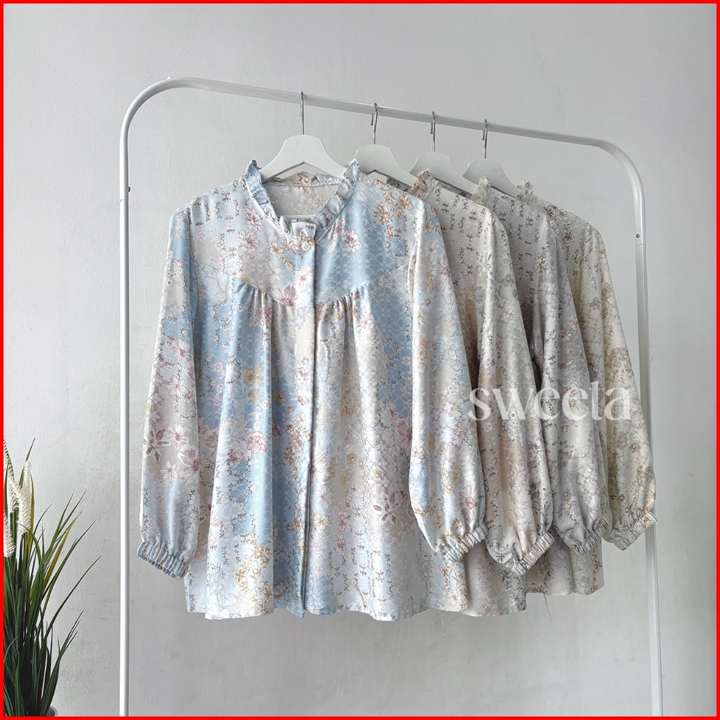 Sweeta Blus U Rample Flower Jacquard Ld 115 Cm Korea Style Atasan Pakaian Wanita
