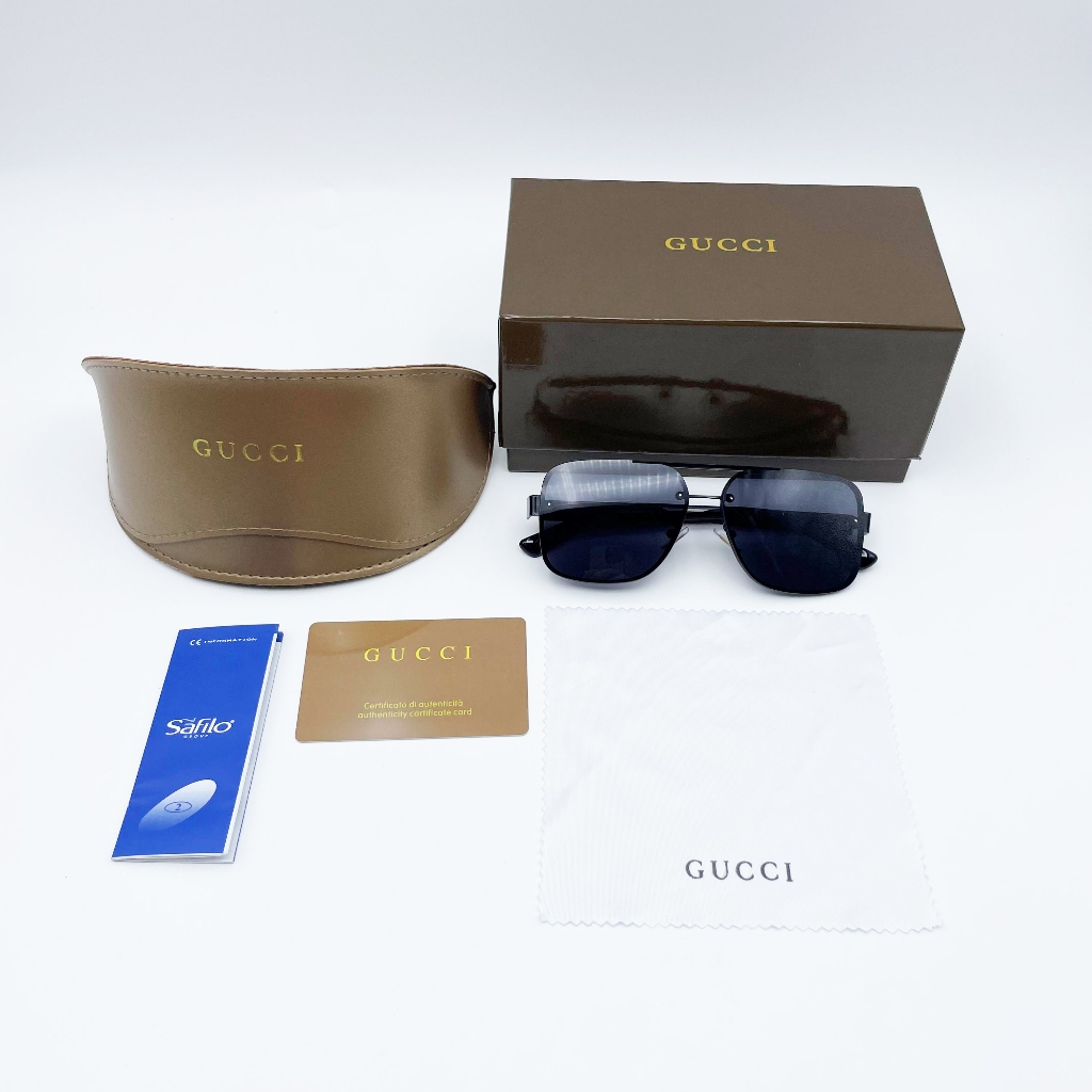 [100 PERSEN Original]Gucci Sunglasses 552 / 1992 SQUARE FRAME Black Grey Gold Brown/UV protection glasses/ fashion glasses/men/women/Kacamata Hitam