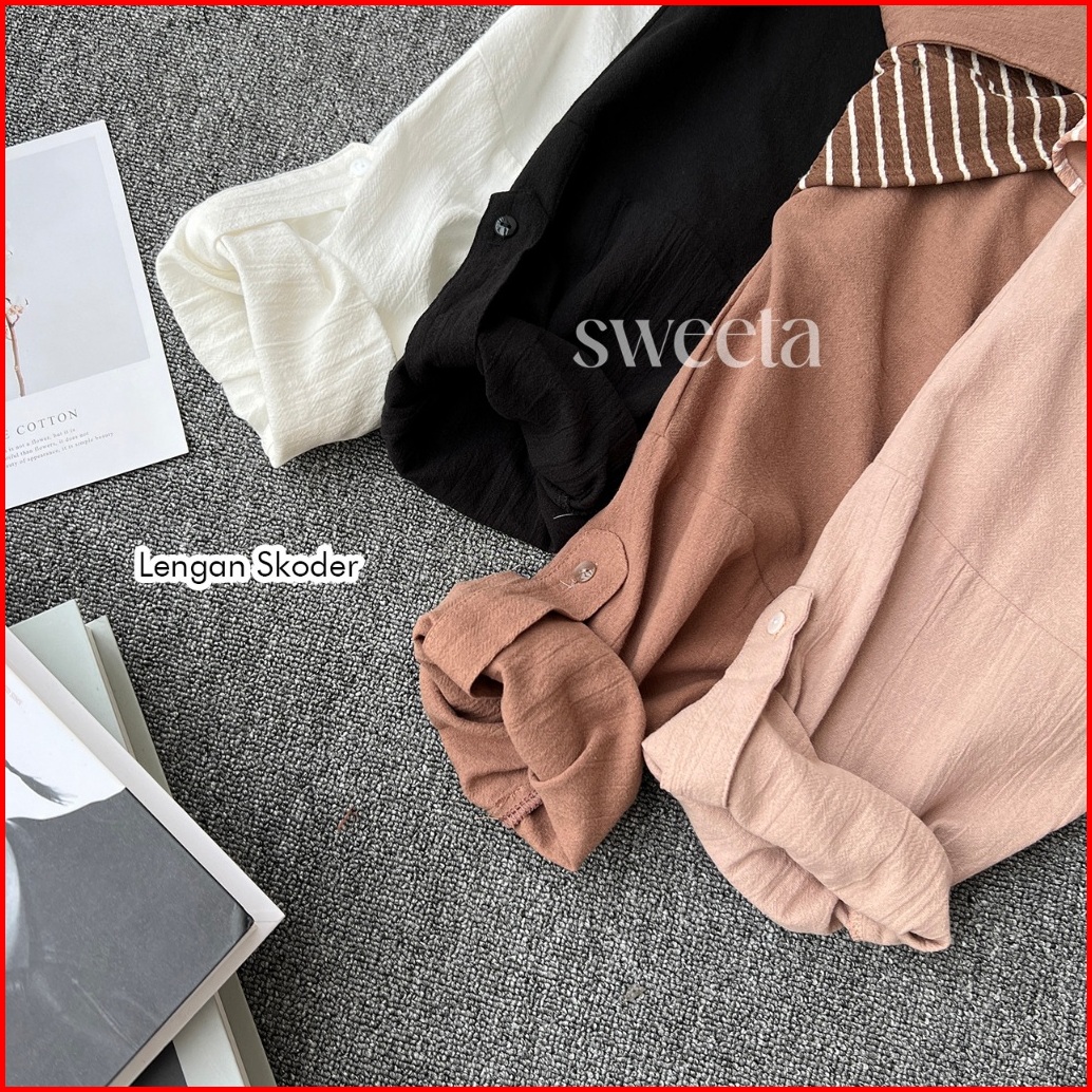 Sweeta Shirt With Syal Two In One Linen Crinkle Korea Style Ld 130 Cm Oversize Jumbo Kancing Dapat Dibuka Atasan Pakaian
