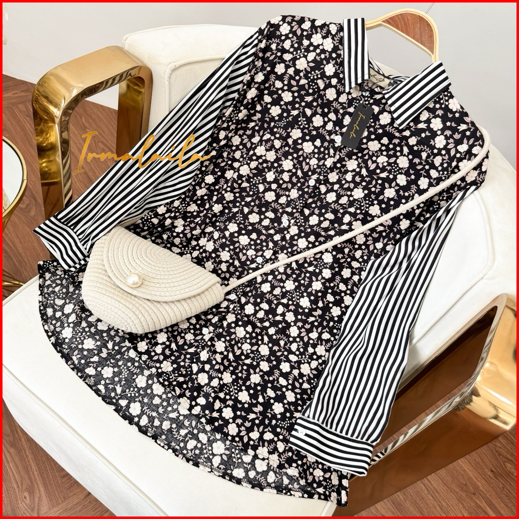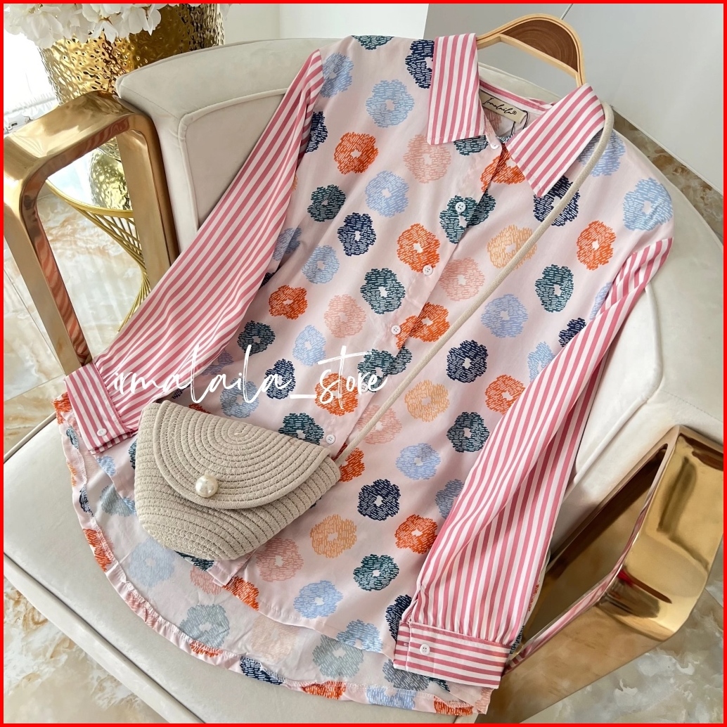 Irmalaila - Alma Shirt Motif Mix Salur Shirt Kemeja Wanita Casual Rayon Bumil Busui Friendly