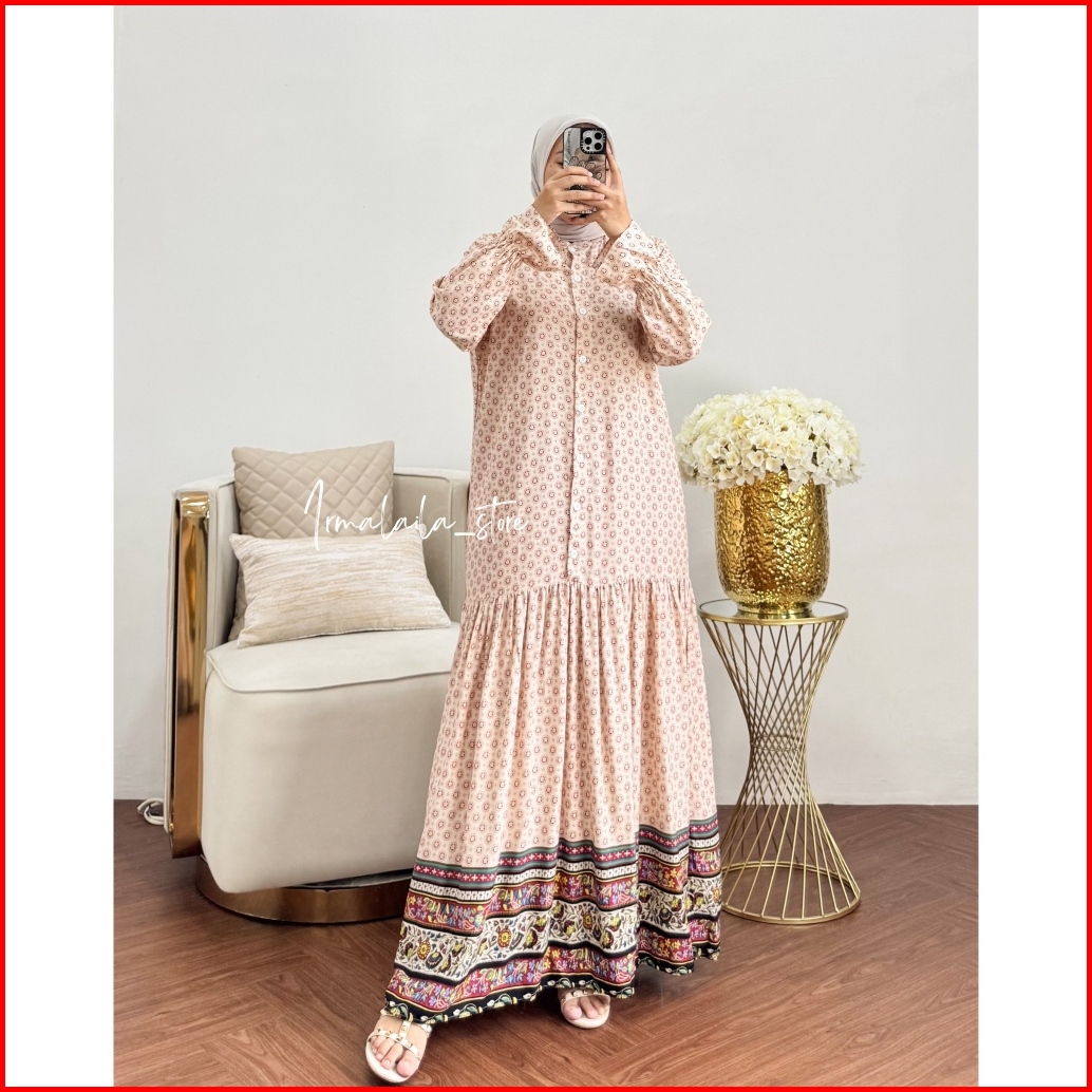 Irmalaila - Sakeena Dress Gamis Mewah Rayon Motif Adem Lembut Nyaman Bumil Busui Friendly