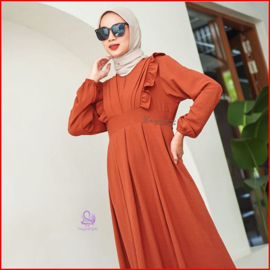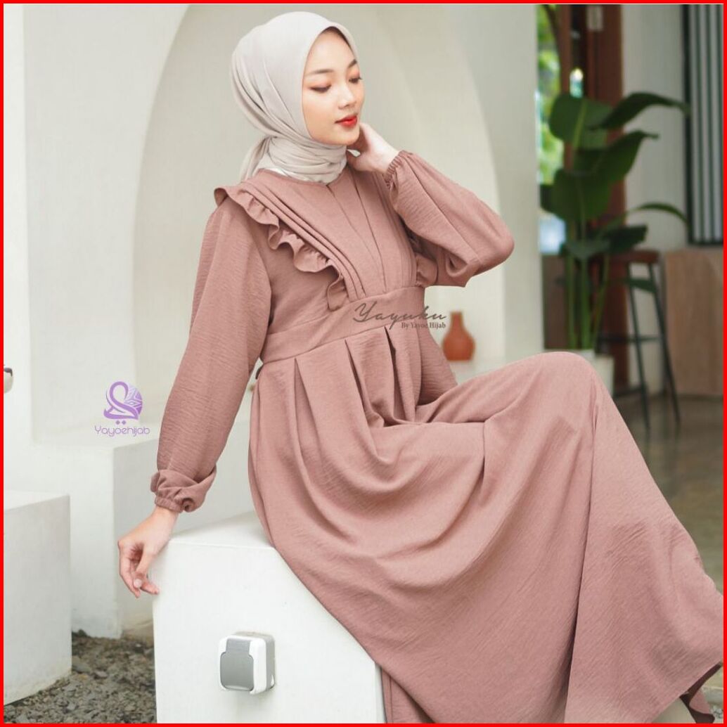 Evelyn Dress Crinckle Wanita Ironless Polos Casual Pakaian Wanita Muslim Wanita Dewasa Remaja