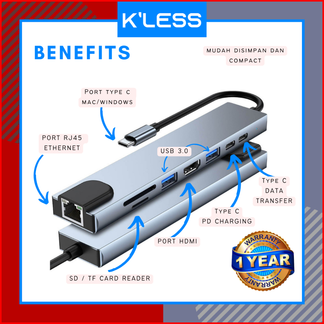 Usb Hub 3.0 Type C Adapter Multi Port 8 In 1 Macbook Laptop Extension