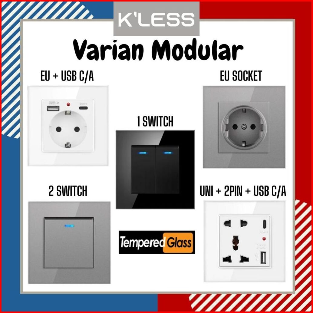 Stop Kontak Dinding Tanam Wall Socket Tempered Glass Design With 2 Usb Type C A