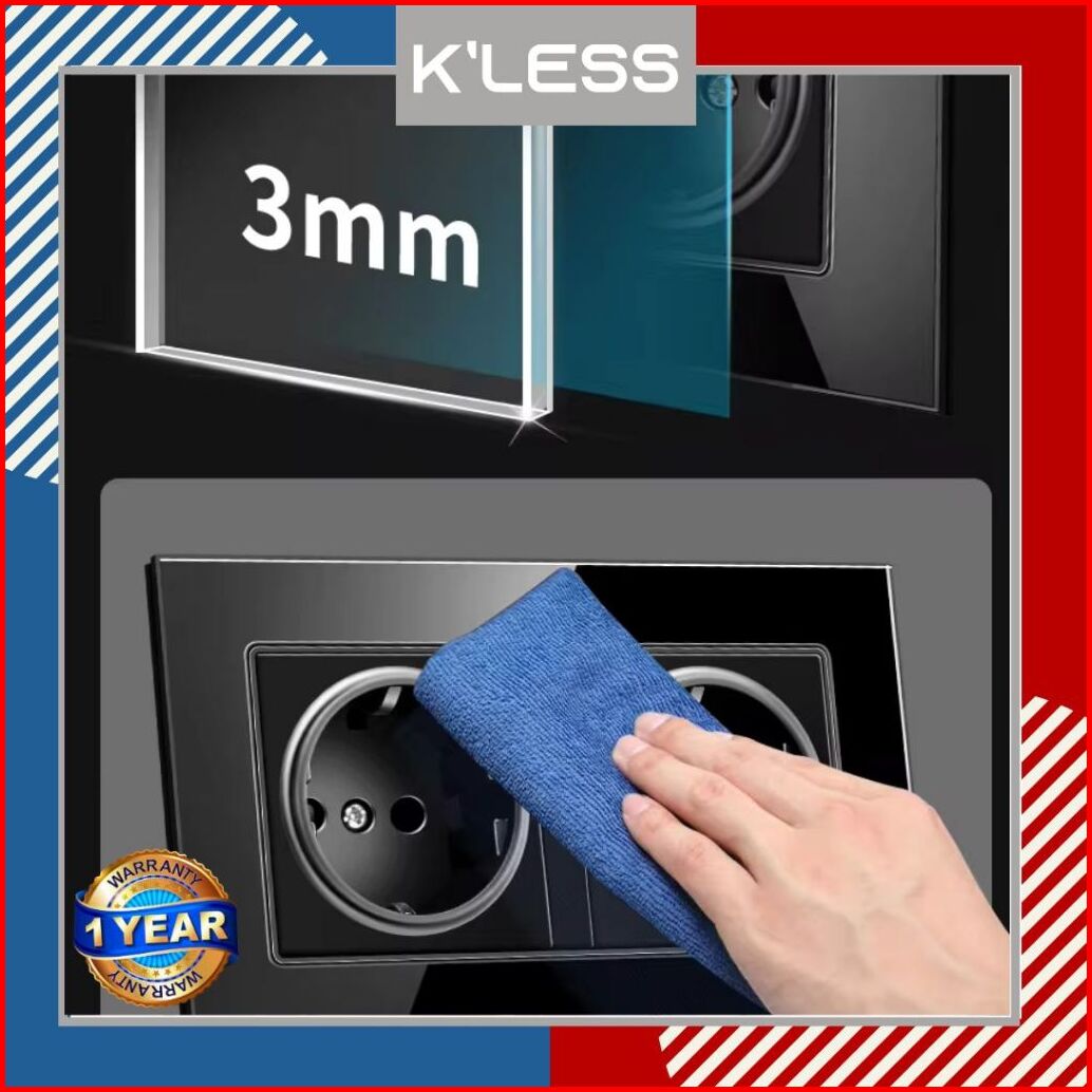 Kless Stop Kontak Dinding Tanam Wall Socket Tempered Glass With 2 Usb