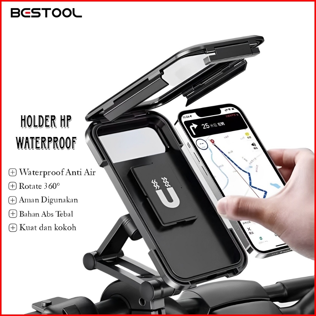 Bestool Holder Hp Motor Waterproof Anti Air Kuat Kokoh Untuk Pemasangan Di Stang Motor Tempat Hp Anti Air 360 Derajat