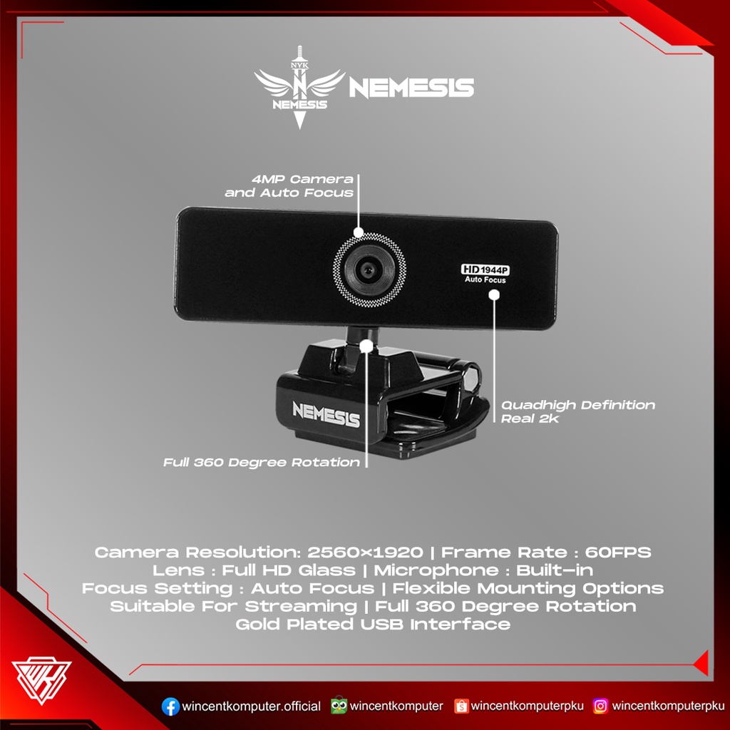 NYK NEMESIS A96 / A 96 SEVERUS Quad HD Webcam With 60FPS 2K 5MP