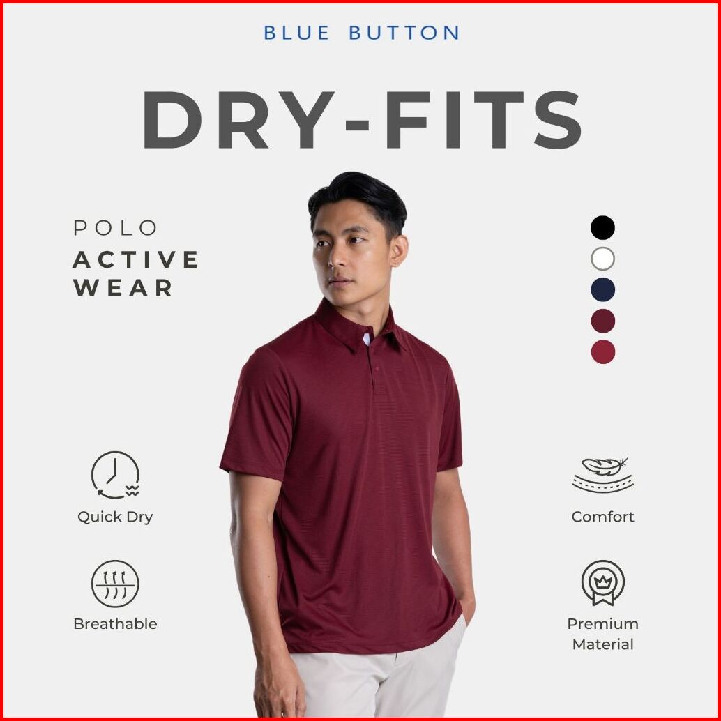 Bluebutton Polo Shirt Pria Active Wear