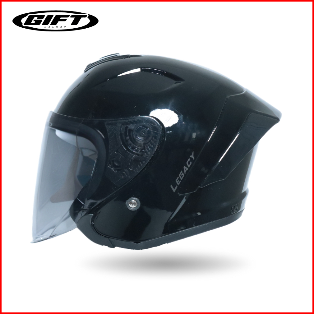 Helm Gift Legacy Original Black - Half Face Helmet Pria Keren Anti Silau Paket Ganteng Sudah Sni