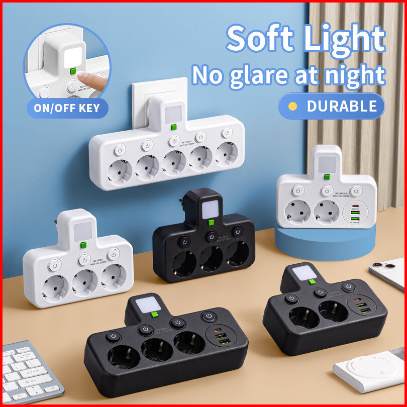 Power Strip Stop Kontak Multi Outlets 2 3 4 5 Lubang Eu Plug Type-c Usb For Home Office