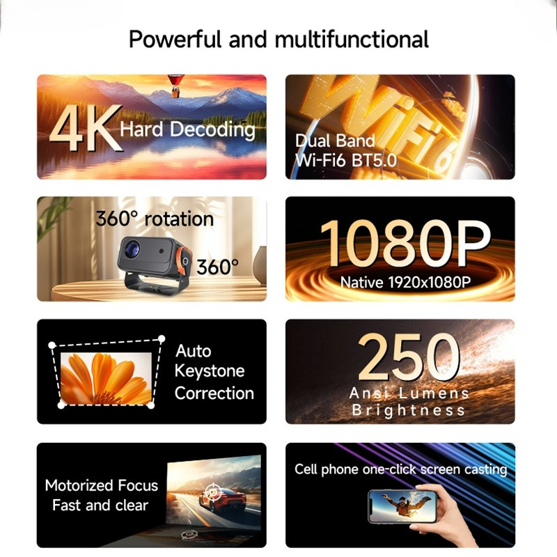 Proyektor Resolusi Tinggi CY900 Focus Otomatis Resolusi 1080P Dilengkapi Sistem Android 13 Proyektor Cerdas Portabel Mendukung 4K Cocok untuk Penggunaan Rumah/Kantor/Pesta Garansi satu tahun