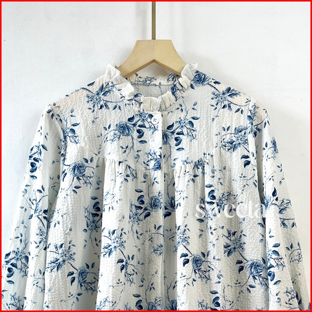Sweeta Blus U Rample Motif Flower Lavanda Premium Ld 115 Cm Korea Style Kancing Dapat Dibuka Atasan Pakaian Wanita Musli
