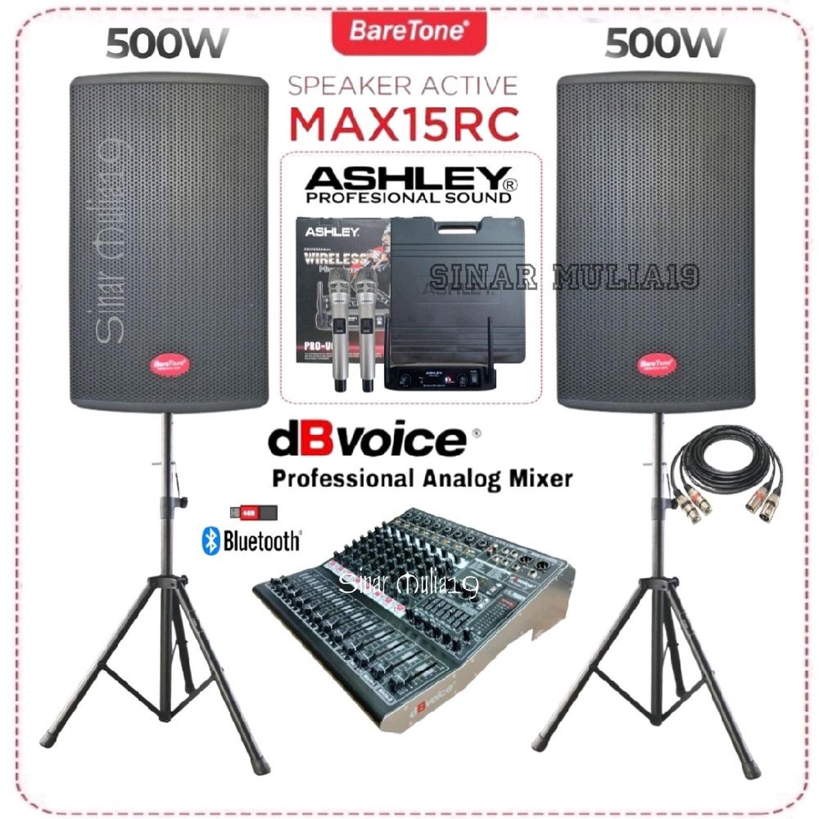 Paket Sound System Speaker Aktif 15 Inch BareTone MAX15RC Mixer dBvoice Mic Wireless