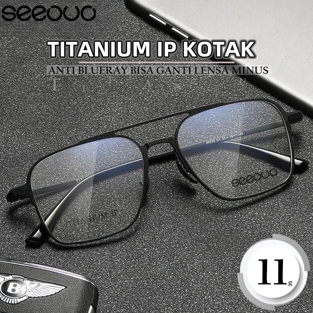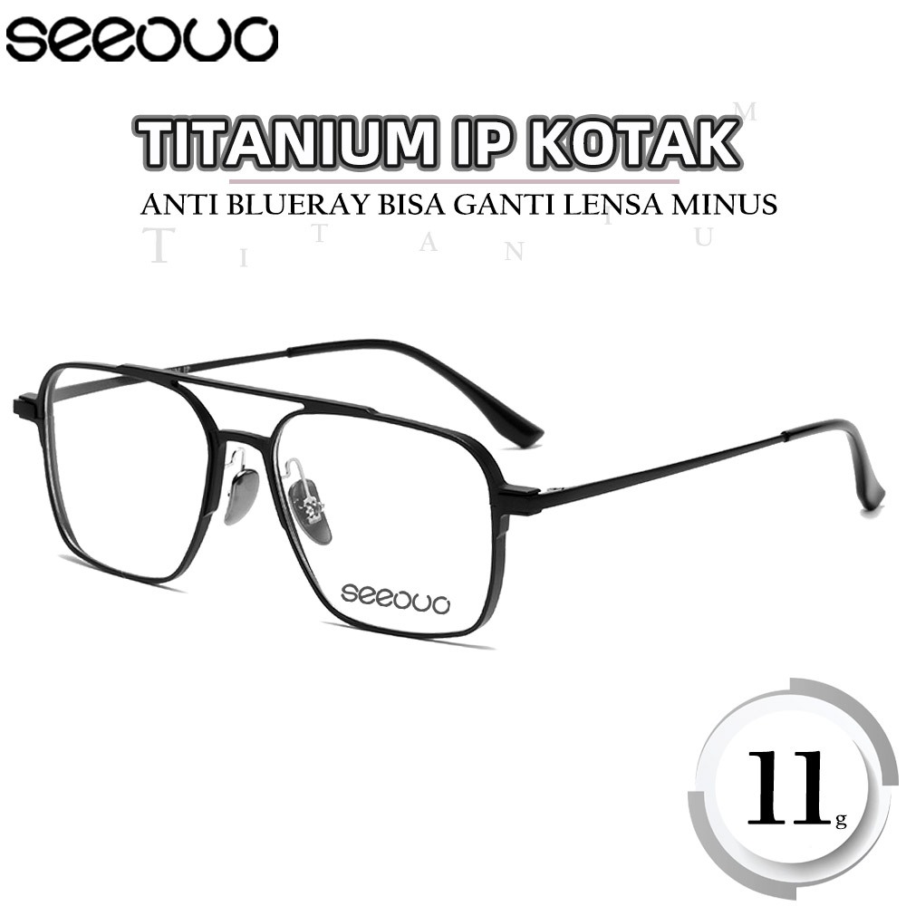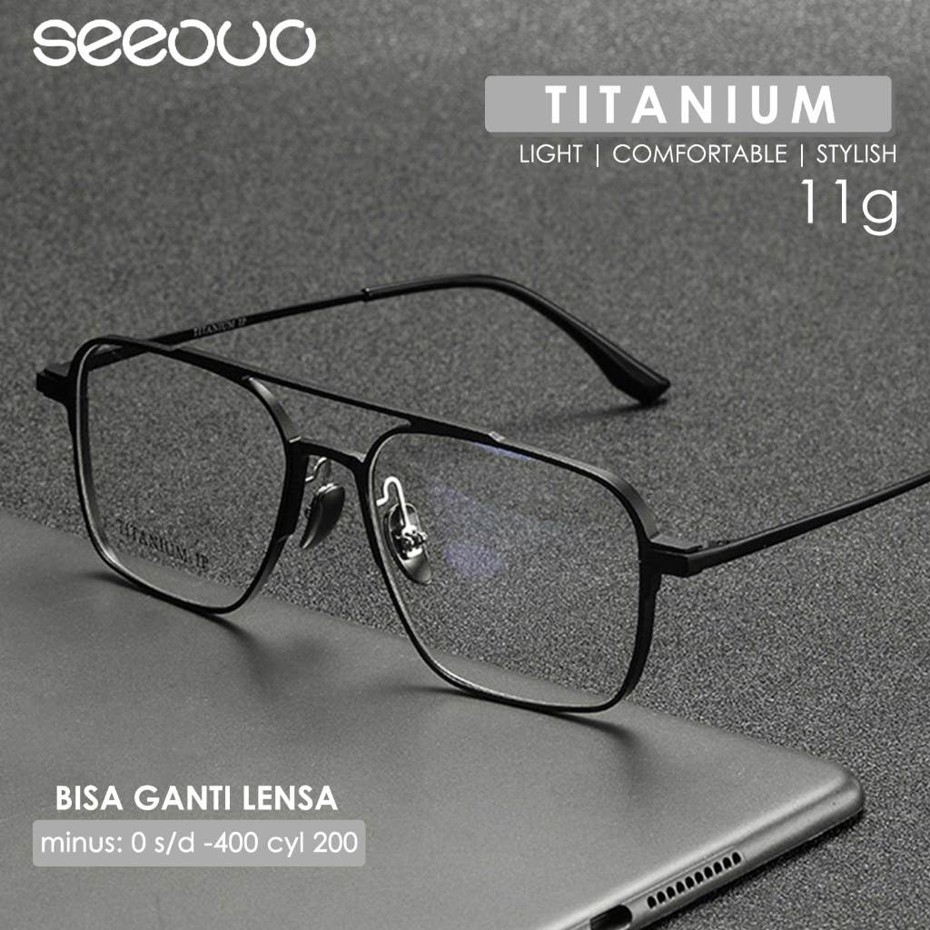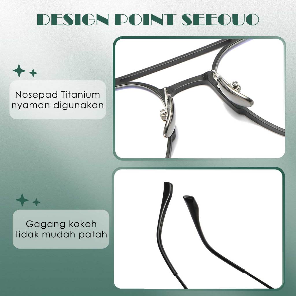 Seeouo Frame Kacamata Plano Lens Aviator Style Simple Elegan Bahan Titanium Ringan Pria Wanita Bisa Minus 20233
