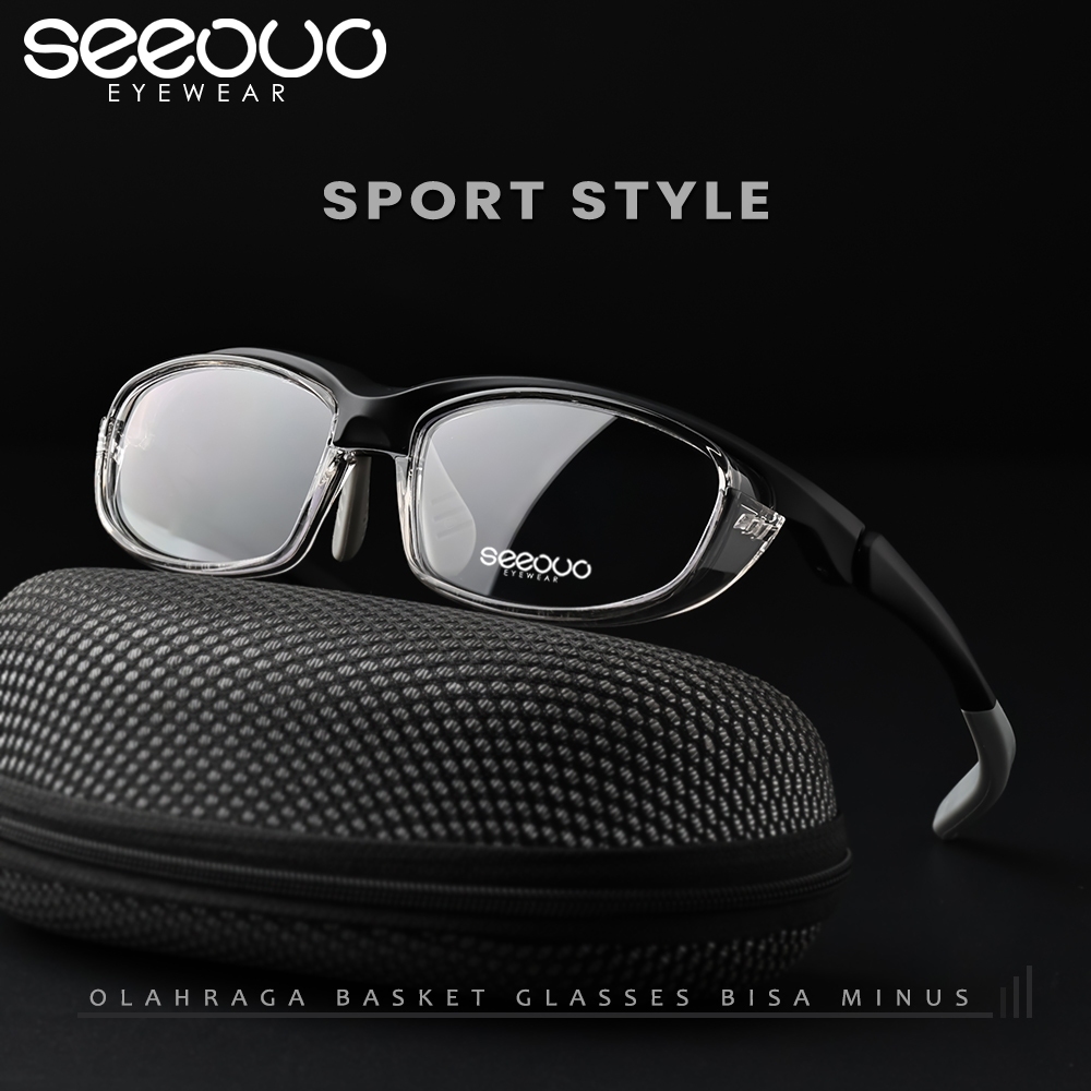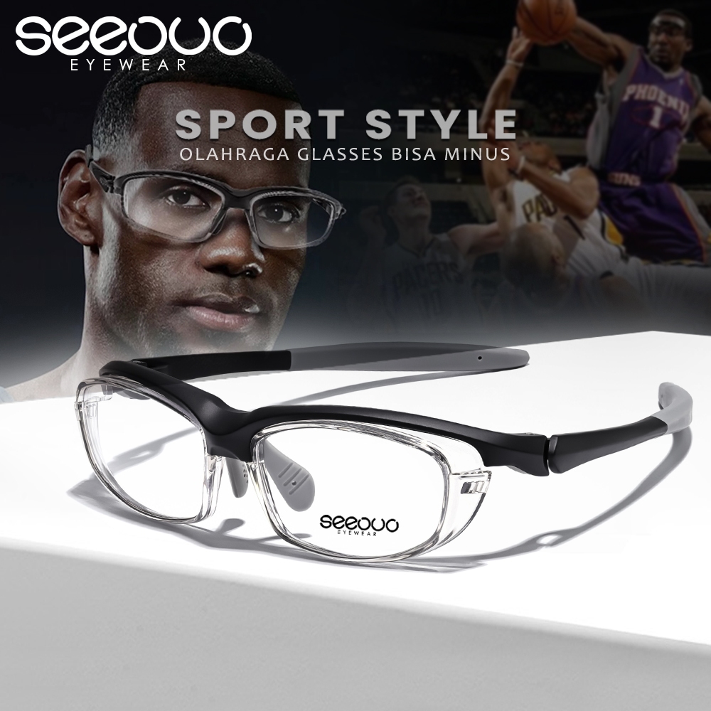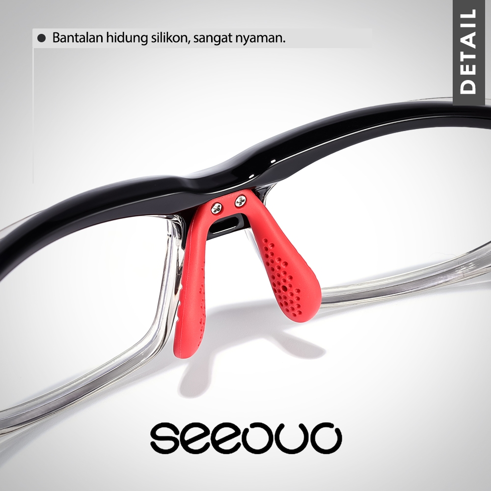 Seeouo Kacamata Sport Glasses TR90+Silicone Plano Lens Bisa Minus Antiradiasi Photocromic Style Oval Pria Wanita Lari Bersepeda 205