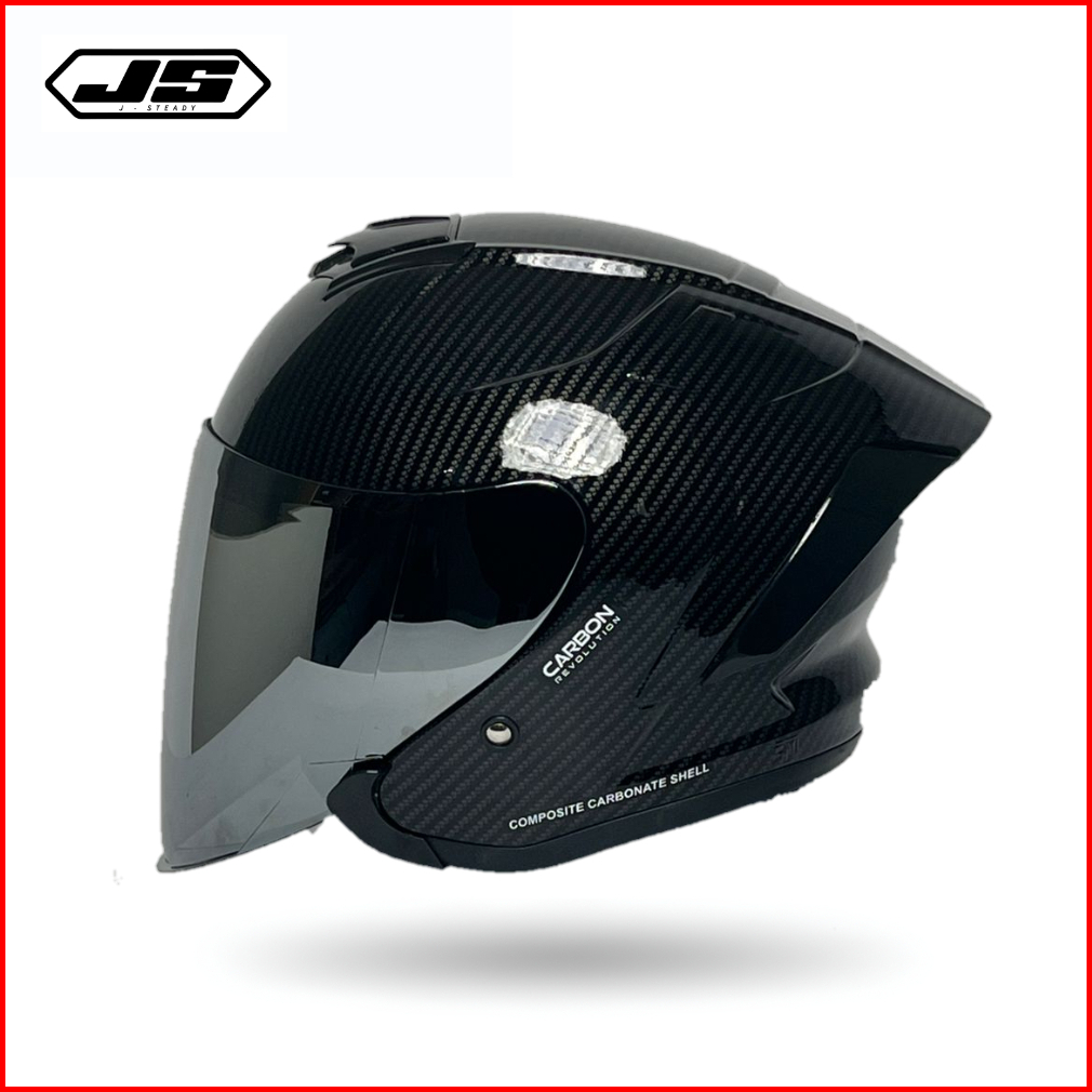 Helm Js Armor Ori Motif Carbon Glossy - Half Face Helmet Cowok Keren Paket Pria Ganteng Sudah Sni