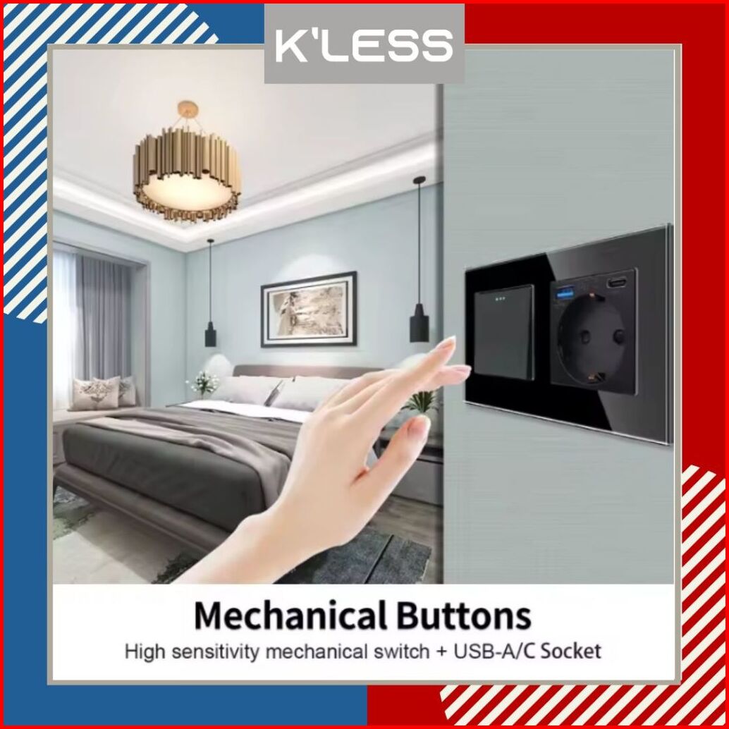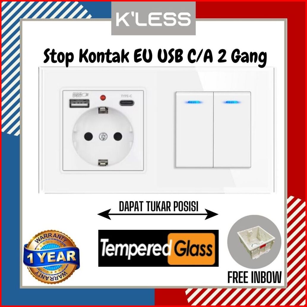 Stop Kontak Dinding Tanam Wall Socket Tempered Glass Design With 2 Usb Type C A