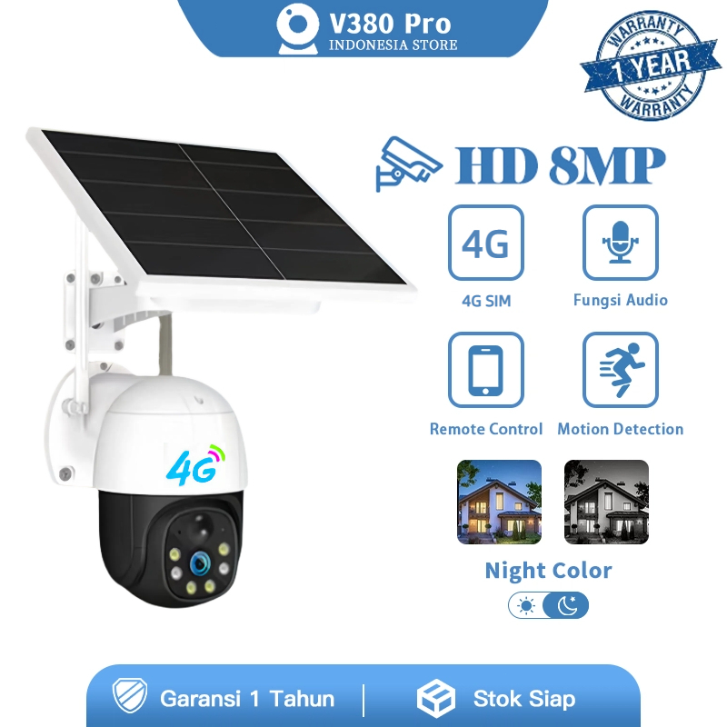 V380 Pro Outdoor CCTV 4G Sim Wifi Solar Panel Tenaga Matahari Full HD Remote Viewing Smart IP Kamera