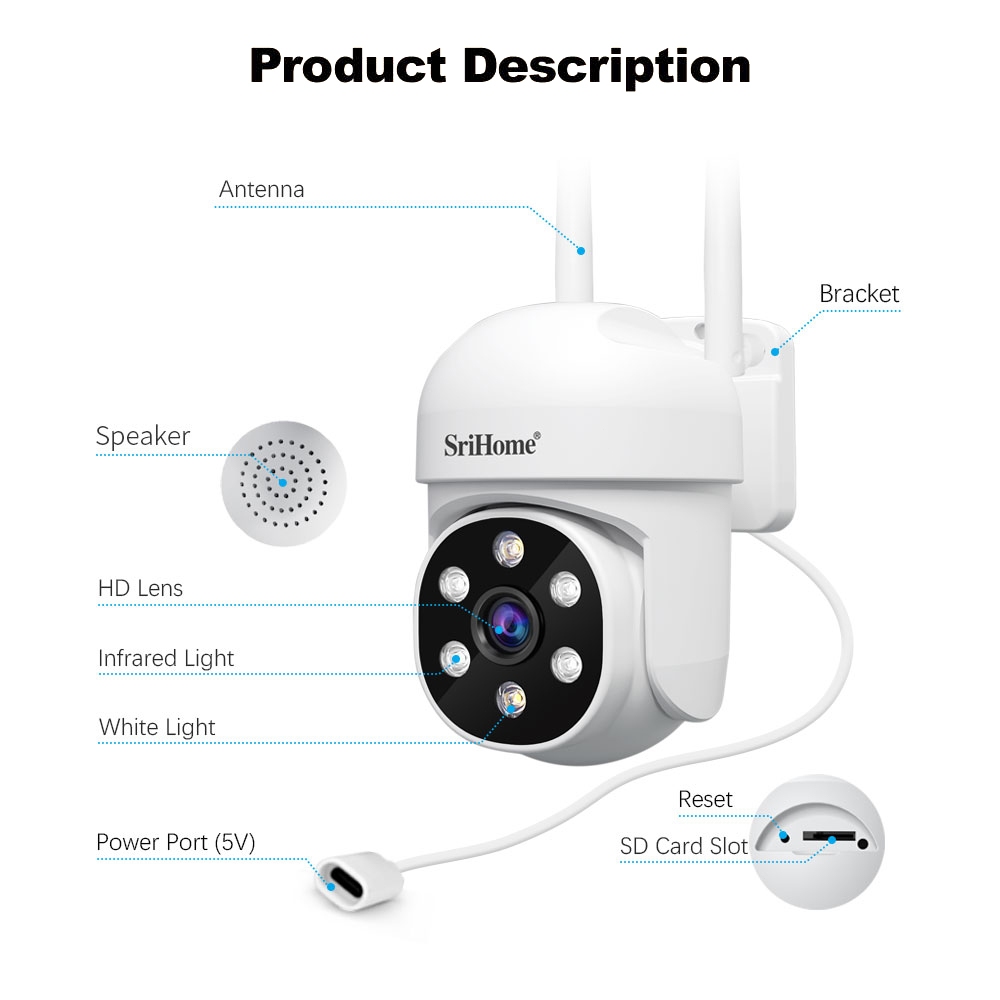 Srihome H061 CCTV Outdoor Wifi 2MP FHD IP66 Waterproof 360 PTZ Jarak Jauh Lewat HP Garansi 2 Tahun