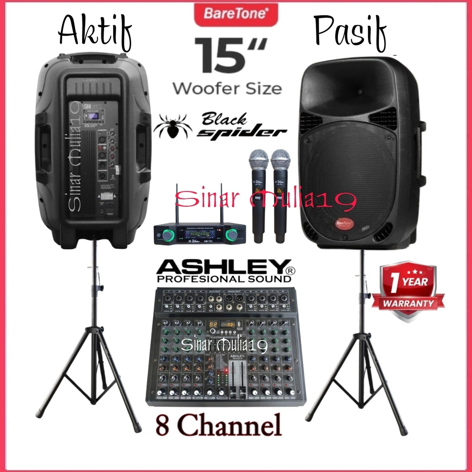 Paket Sound System Karaoke Baretone 15 Inch Aktif & Pasif Original Mixer 8 Ch Ashley