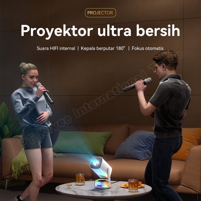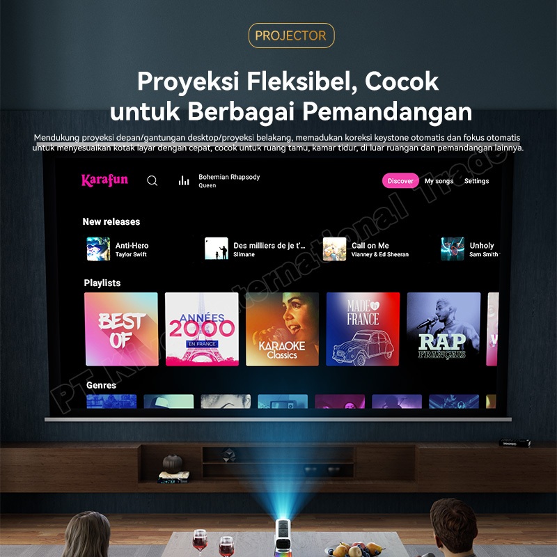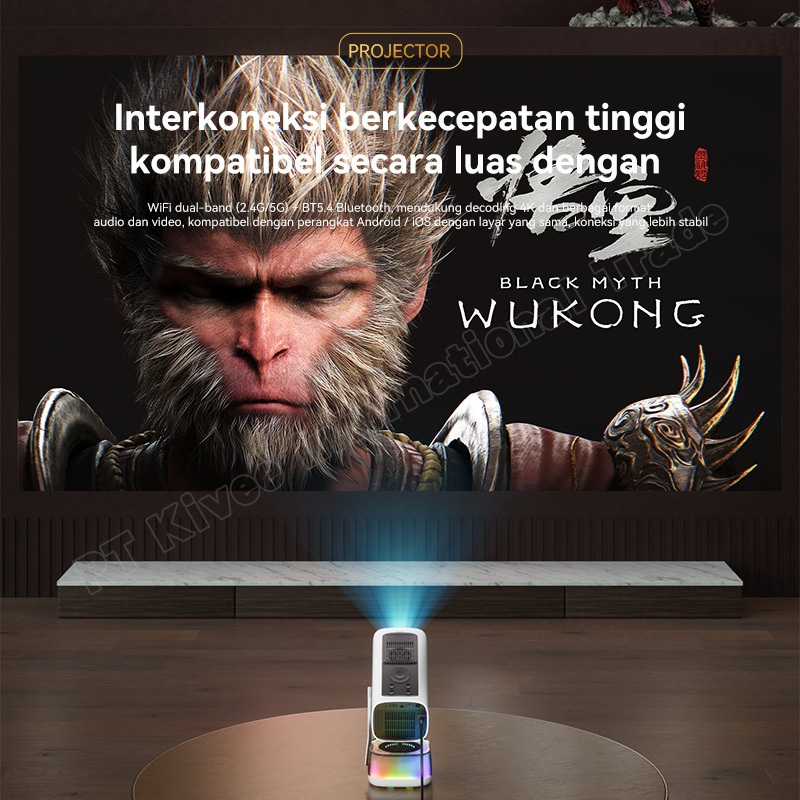 SAERIS Proyektor Android 4K Full HD Proyektor hp ke Dinding Max 200" AI Auto Infokus WiFi 5G RGB