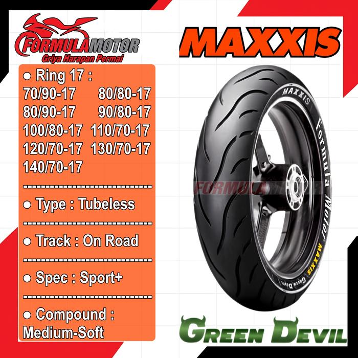 Maxxis Green Devil Ma-G1 Ring 17 Tubeless All Size Profil Donat Medium Soft Compound Ban Motor Bebek/Sport Tubles Ukuran