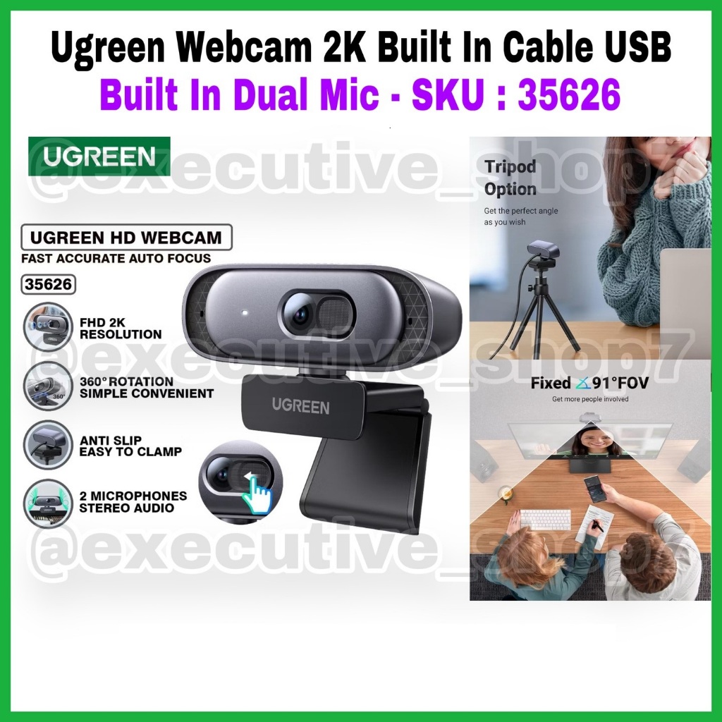 Ugreen Webcam 2K Built In Cable USB - Built In Dual Mic - SKU : 35626 - Garansi Resmi 1 Tahun