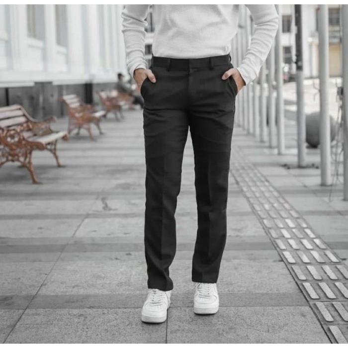 Paket Bundling 1 Paket Isi 2 Celana Panjang Pria Slimfit Formal Kantor Kerja Hitam Abu Tua Muda Navy Polos Kain Semi Wol