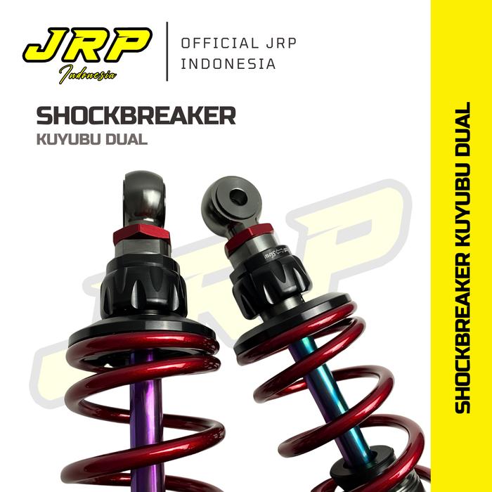 JRP - SHOCKBREAKER BELAKANG TABUNG KUYUBU SERIES DOUBLE TABUNG UNIVERSAL MATIC & BEBEK 280,320,340MM PRELOAD & REBOUND AKTIF AS RAINBOW - BIRU, 280MM