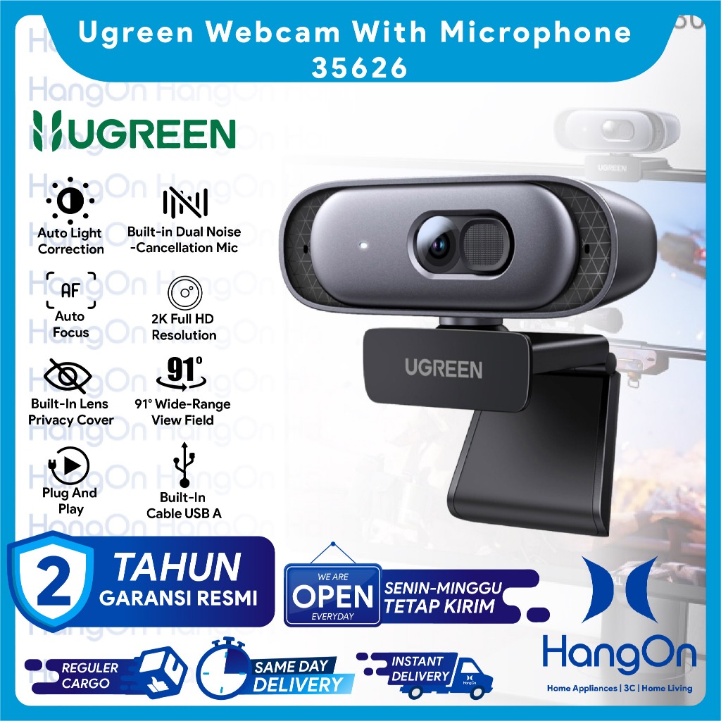 UGREEN 35626 USB Webcam 2K Full HD Resolution 1080P 60fps Built in Lens Privacy Cover Kamera Dual Mic Noise Cancelling Auto Focus Web Camera Light Correction