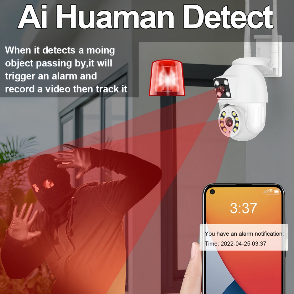 V380 Pro Dual Lens Outdoor CCTV Smart Wifi HD 8MP Full View Night Vision Audio Dua Arah IP Kamera