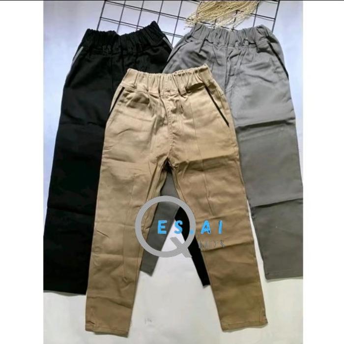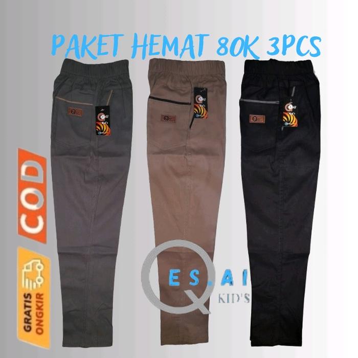 Paket Promo 3 Celana Chinos Anak Laki Laki Slim-Fitting - Hitam Moka Abu, S (1-3Th Estimasi)