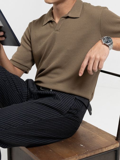 Kaos Polo Knit Waffle - Abby Waffle Polo By Schouten