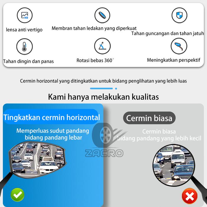 Zacro S4 Spion Variasi Motor Cermin Biru Dan Putih Anti Silau 360 Derajat / Kaca Spion Universal Motor - Cermin Blue Ray