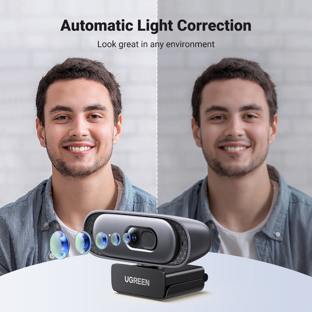 UGREEN Webcam 2K 30fps/1080P 60fps with Privacy Cover Dual Noise Cancellation Microphones Computer 35626