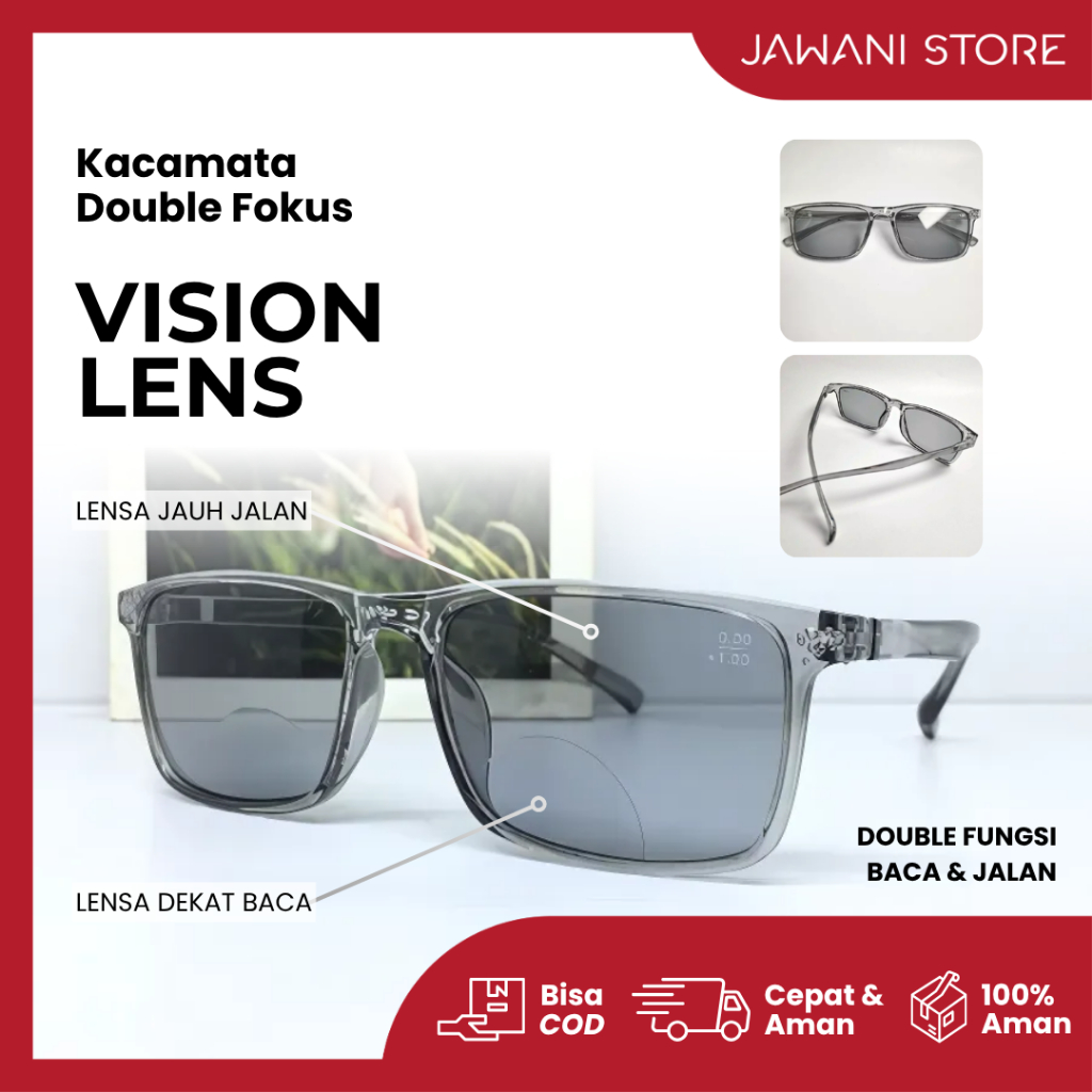 [ 𝐓𝐄𝐑𝐋𝐀𝐑𝐈𝐒 ] GREY VISION LENS Kacamata Double Fokus Baca dan Jalan Kaca Mata Baca Plus Jalan Pria Wanita Progresif