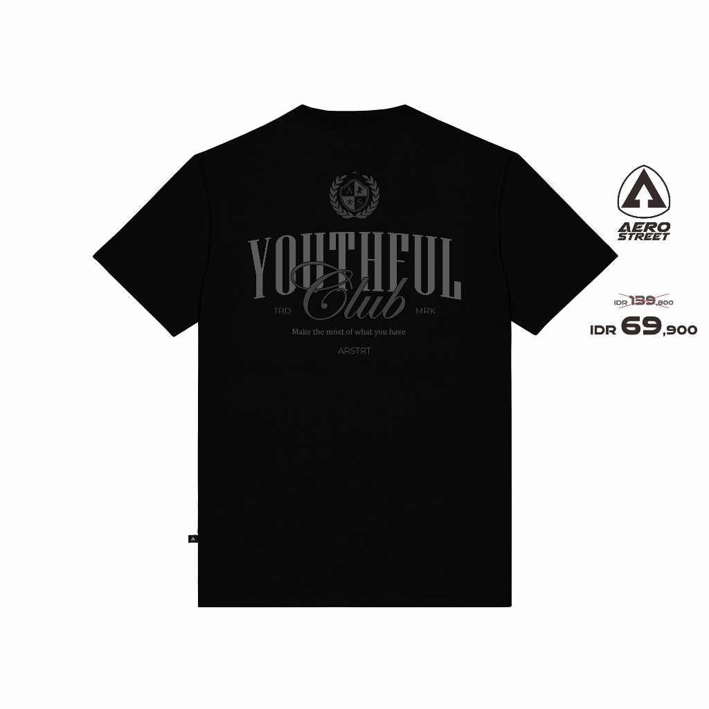 Aerostreet T Shirt Youthful Club Hitam Man Kaos Tshirt AACAA