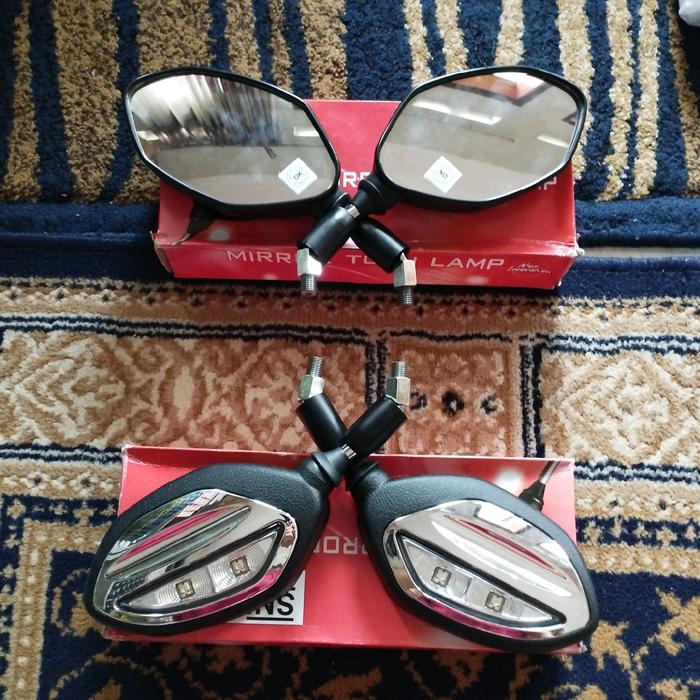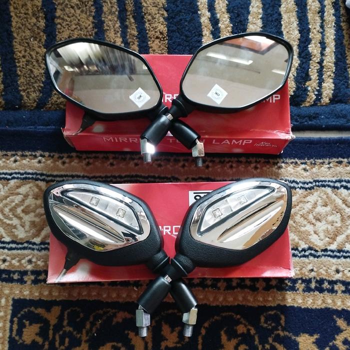 Spion Bubut 3 Jari Spion Motor Vario 125/150/160 Beat Scoopy Aerox Nmax Spion Led Bubut Tangkai Pendek Spion Led Style P