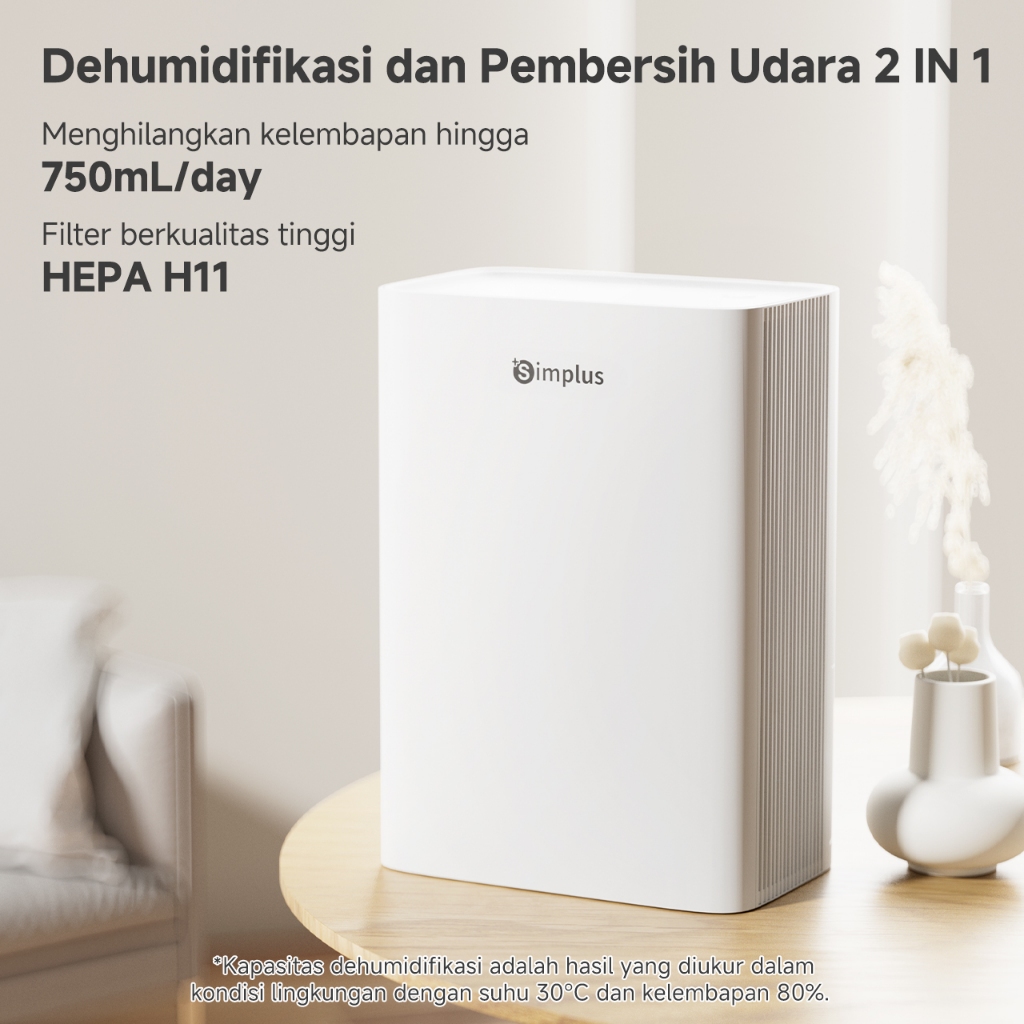 Simplus 2 IN 1 Dehumidifier dan Pembersih Udara 750ml/hari 1,5L Filter Hepa H11 Kualitas Tinggi