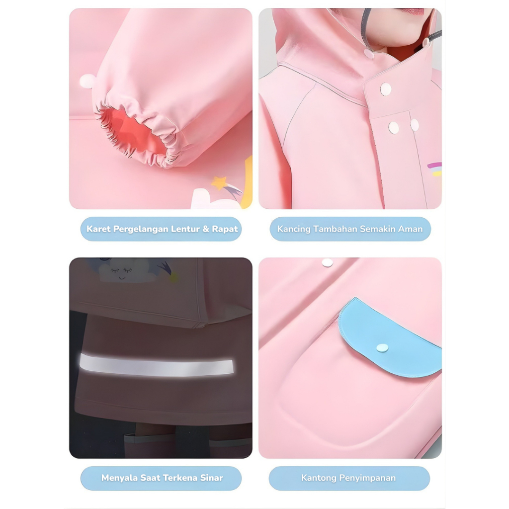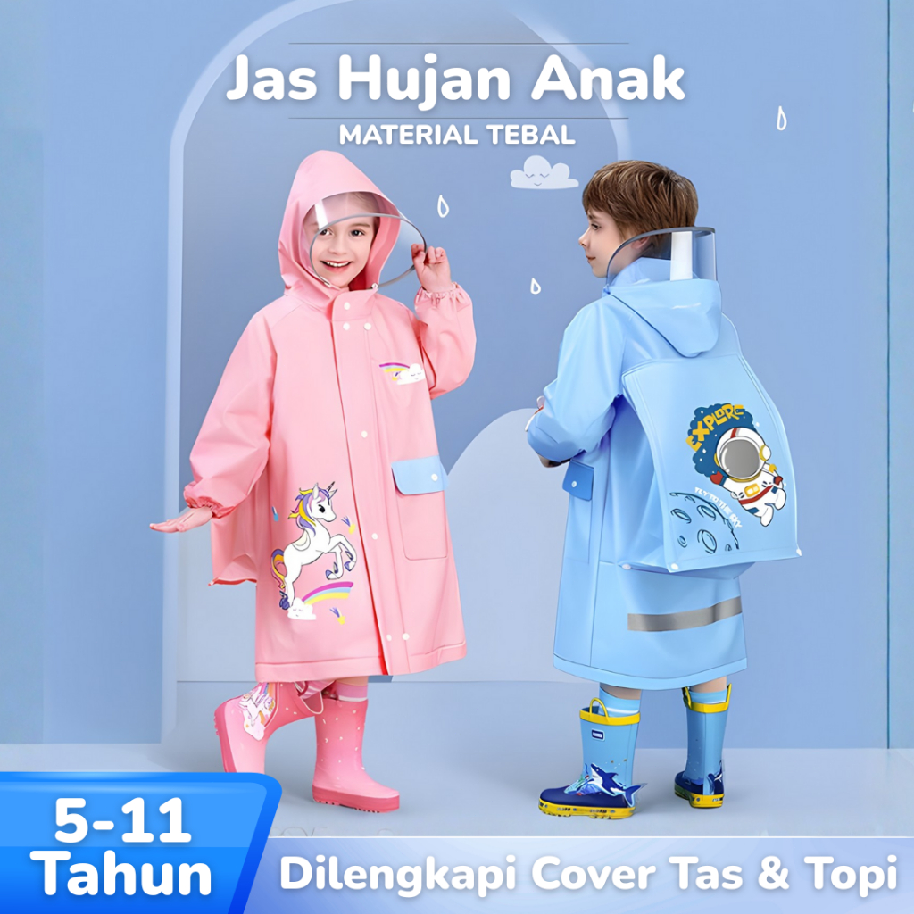 Jas Hujan Anak Mantel Anak Hoodie Tebal Anak Laki laki dan Perempuan Ponco Extra Topi