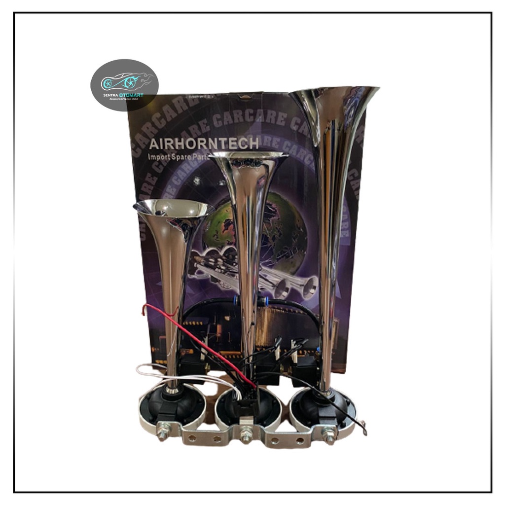 Klakson Telolet 3 Terompet 12V dan 24V 3 Corong Telolet Chrome / Klakson Basuri Merk Airhorntech