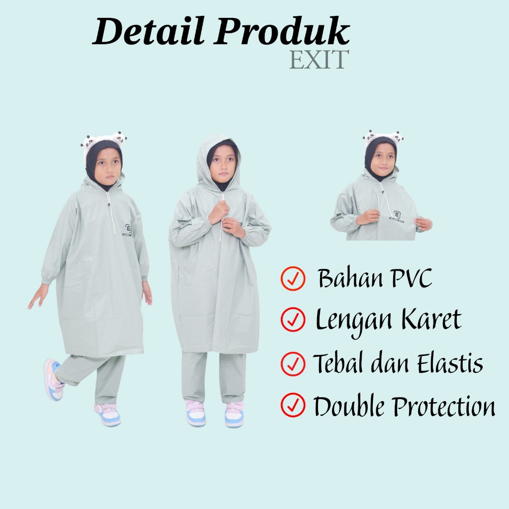 EXIT Jas Hujan Ponco Anak Perempuan Laki Laki Tahan Air Setelan Baju Celana Bahan Kuat Elastis